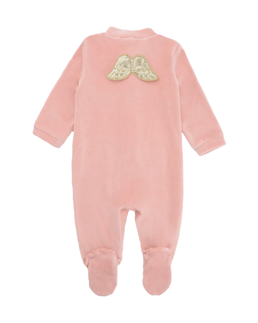 Velour Angel Wing™ Sleepsuit - Gold & Dusty Pink