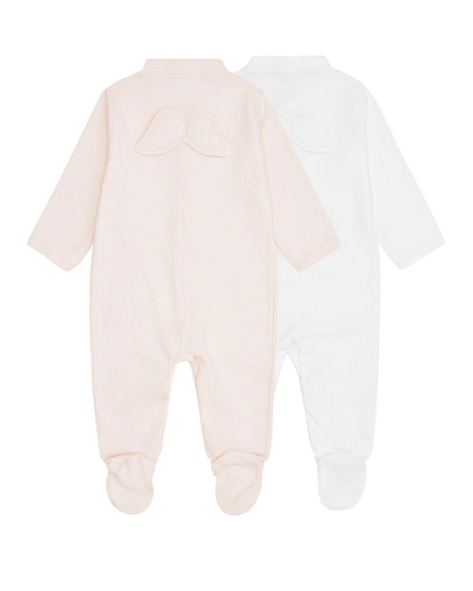 Set of 2 - Pointelle Angel Wing™ Sleepsuits - White & Pink