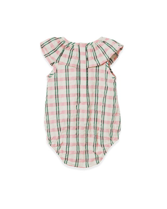 Seersucker Collar Romper, Check Carnation