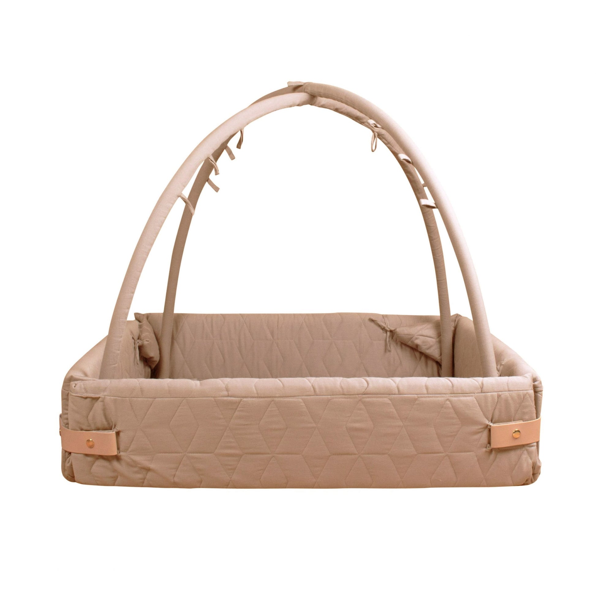 Fold the sides down to sit on the mattress with your little one or give your little one the possibility to crawl around. Close the activity nest with a leather buckle that is clicked on with press studs.