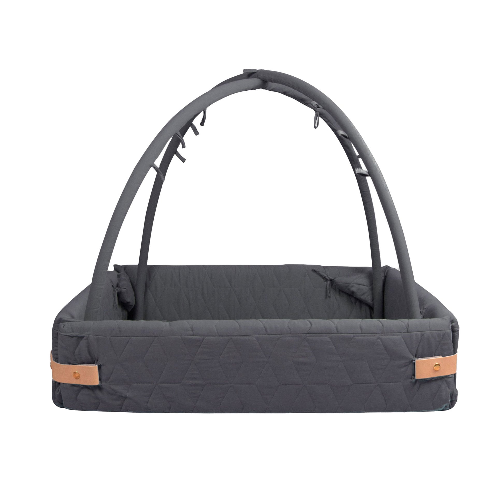 Fold the sides down to sit on the mattress with your little one or give your little one the possibility to crawl around. Close the activity nest with a leather buckle that is clicked on with press studs.