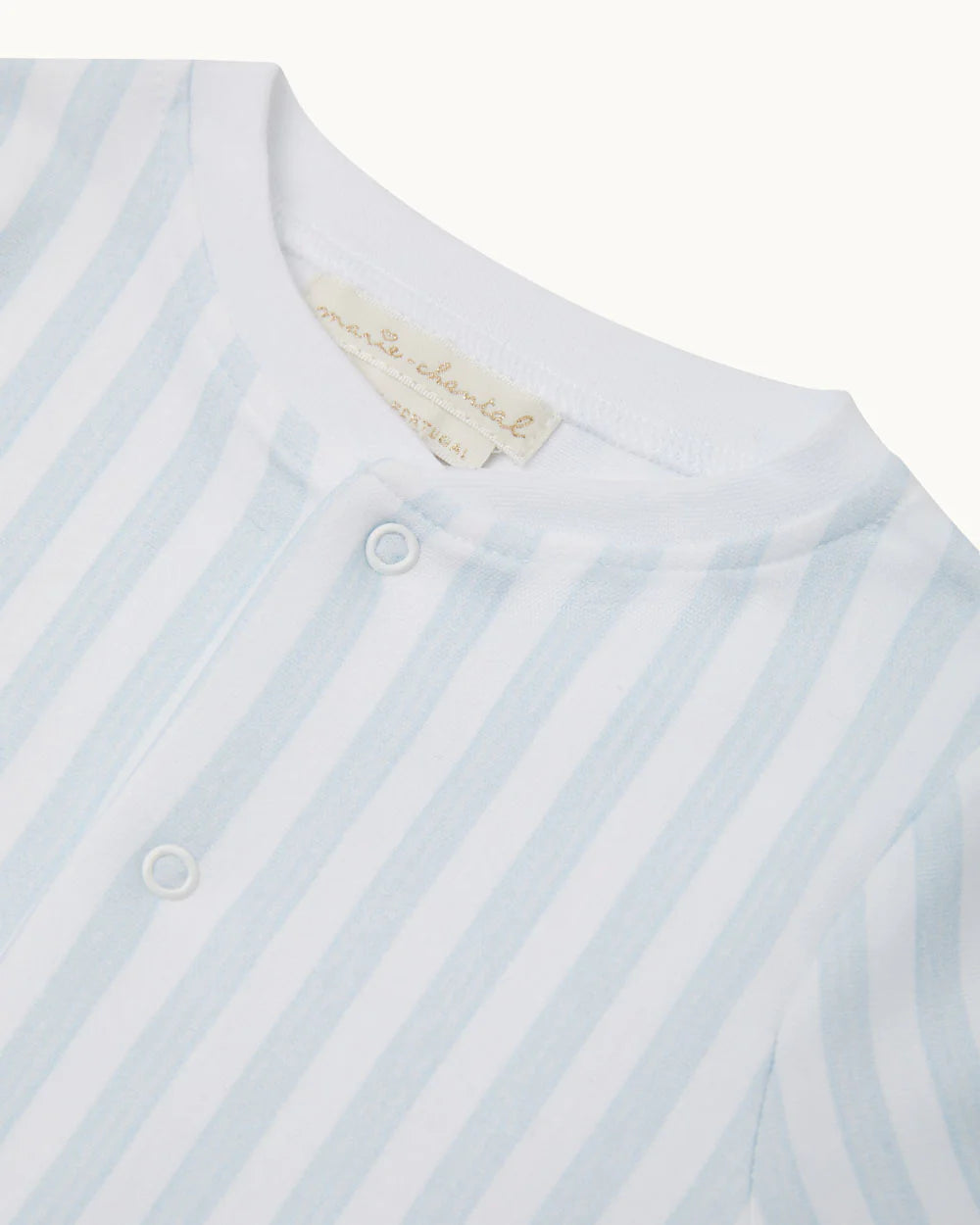 Marie-Chantal's Adore Stripe Pyjama for Baby. A celebration of love and effortless elegance, featuring soft and graceful Marie-Chantal stripes in blue.