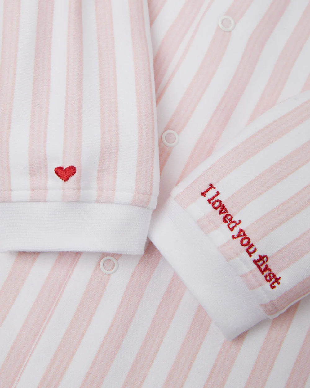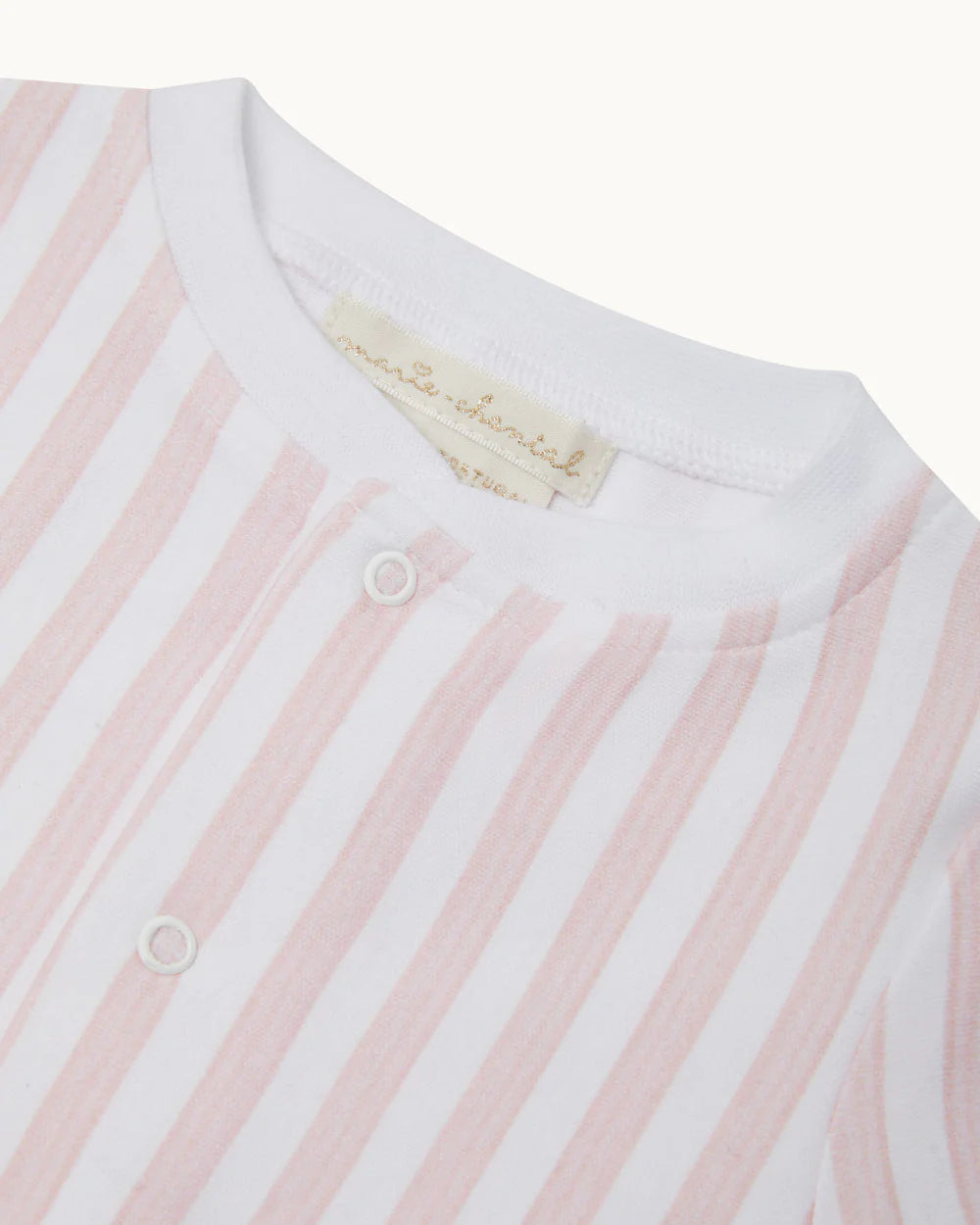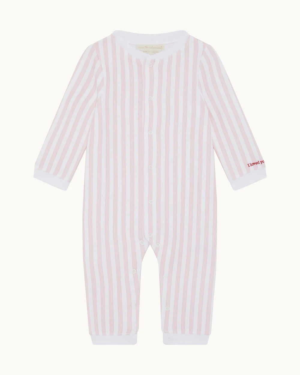 Marie-Chantal's Adore Stripe Pyjama for Baby. A celebration of love and effortless elegance, featuring soft and graceful Marie-Chantal stripes in pink.