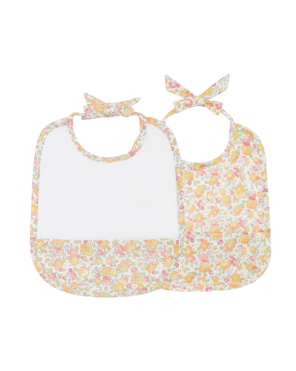 The April Olympia Bib two piece set, designed in this season’s yellow Olympia floral print.