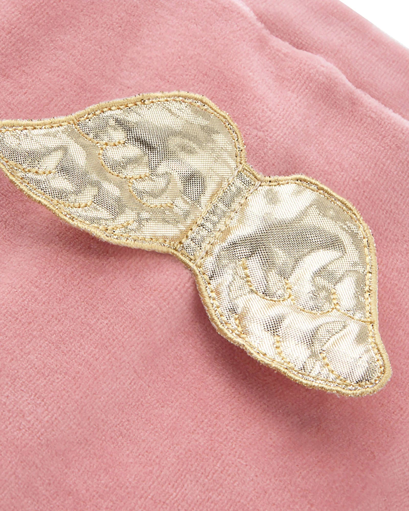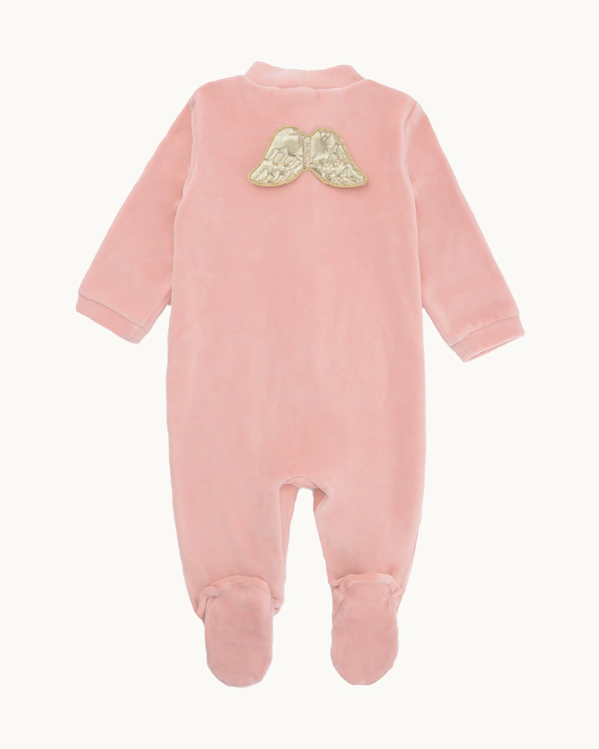 - Angel Wing Velour Sleepsuit - Dusty Pink & Gold