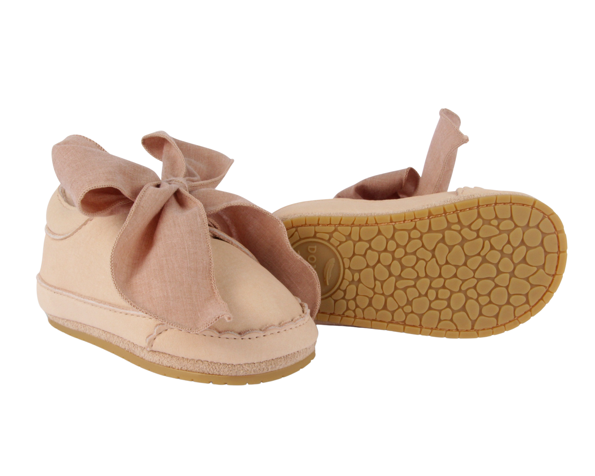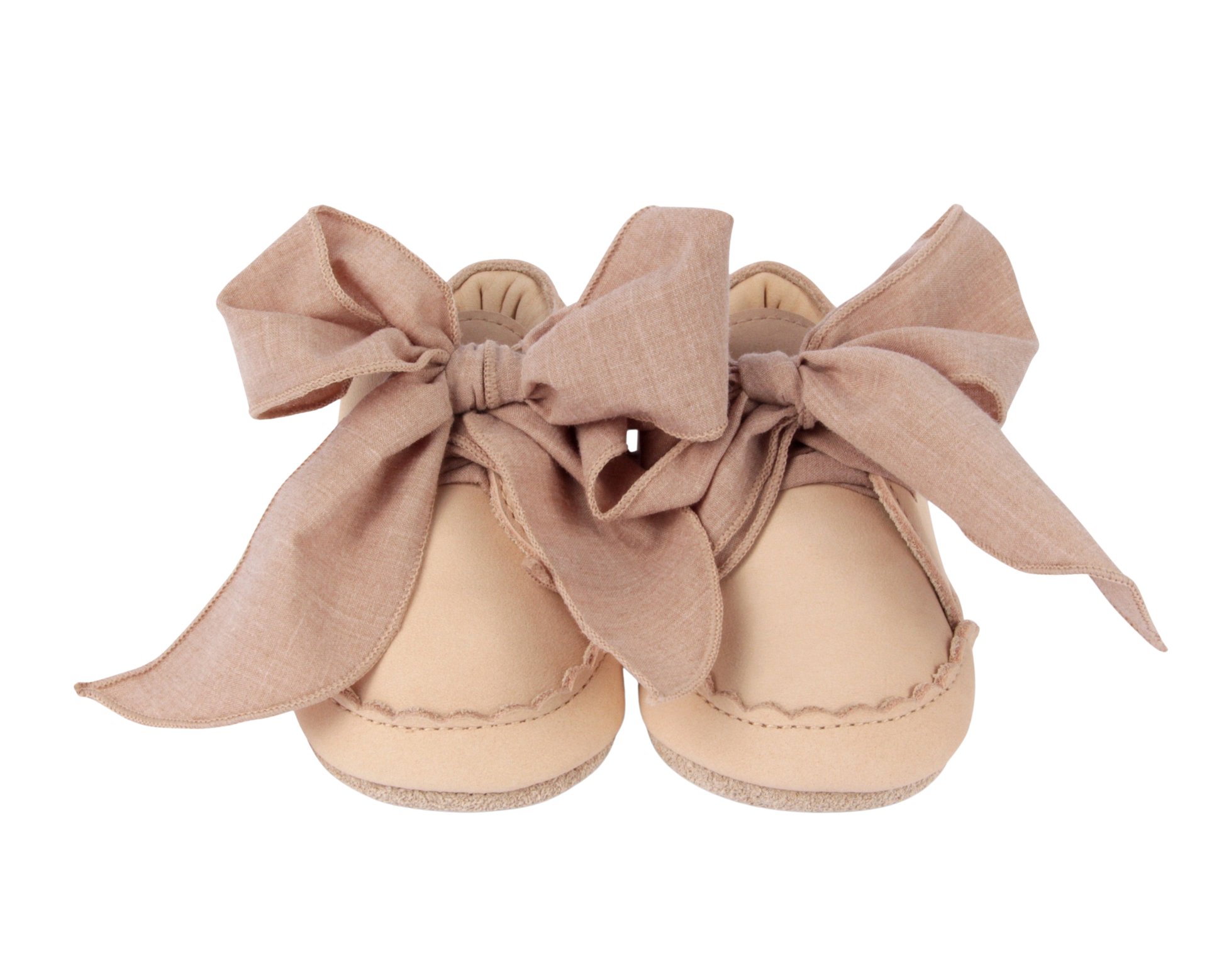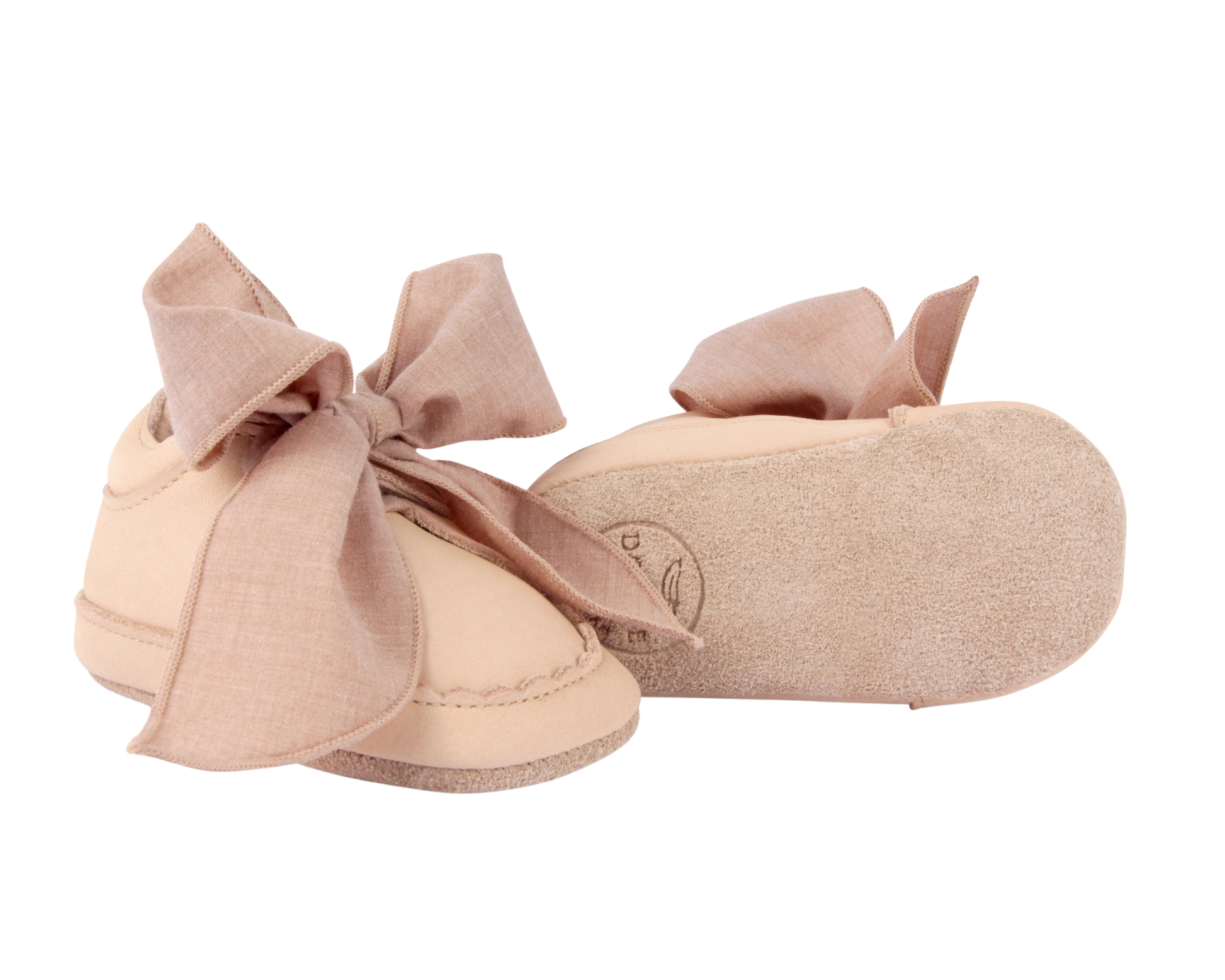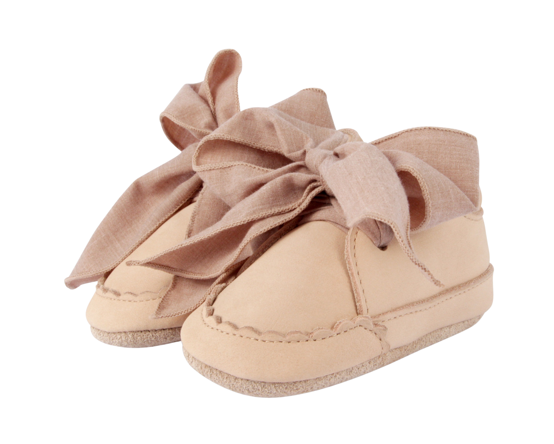 Sweet tiny steps! The cutest and most comfortable shoes for your little girl's first steps. They are made from the softest premium leather and finished with small wavy edges. A beautiful chiffon bow gives a stylish finishing touch.