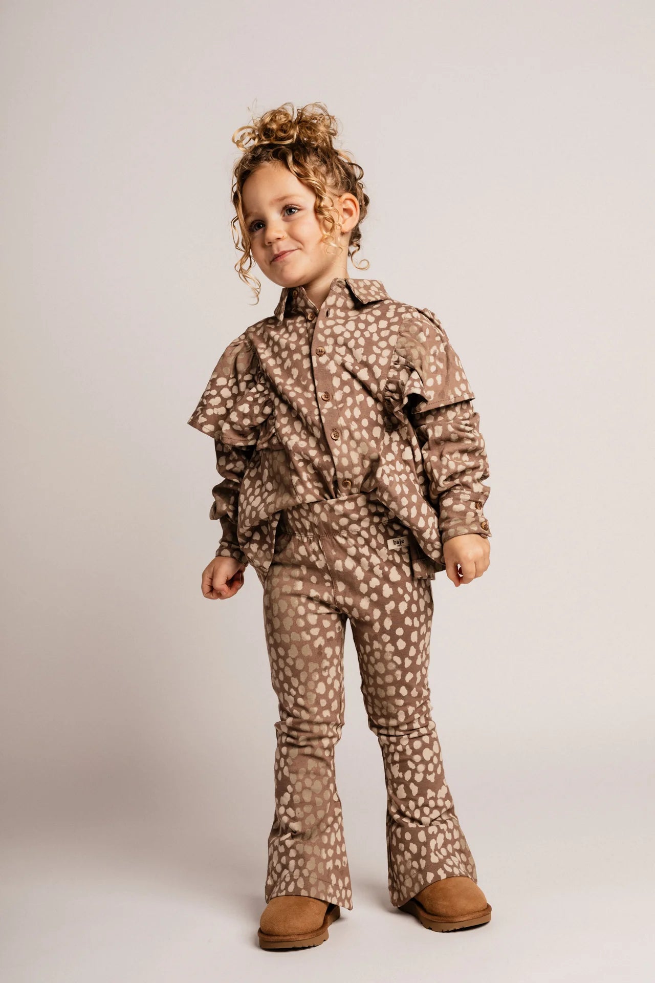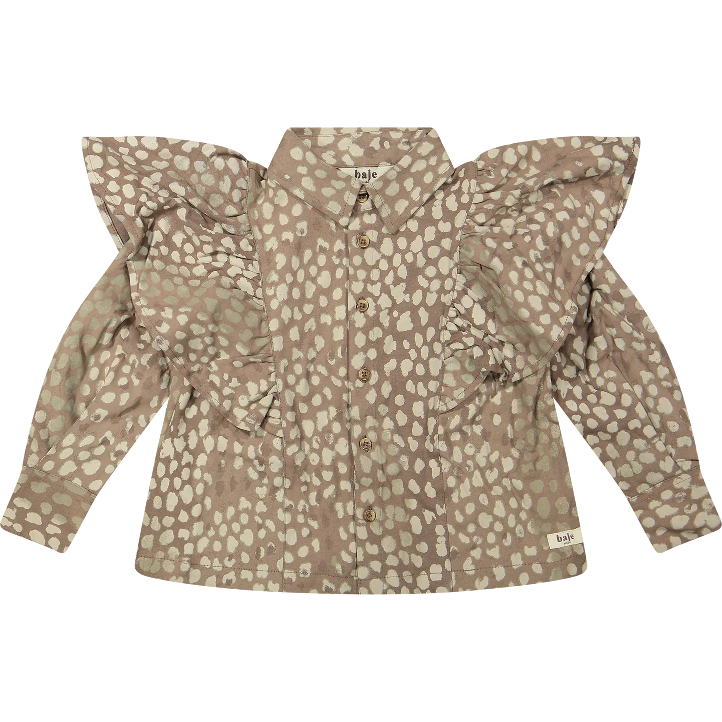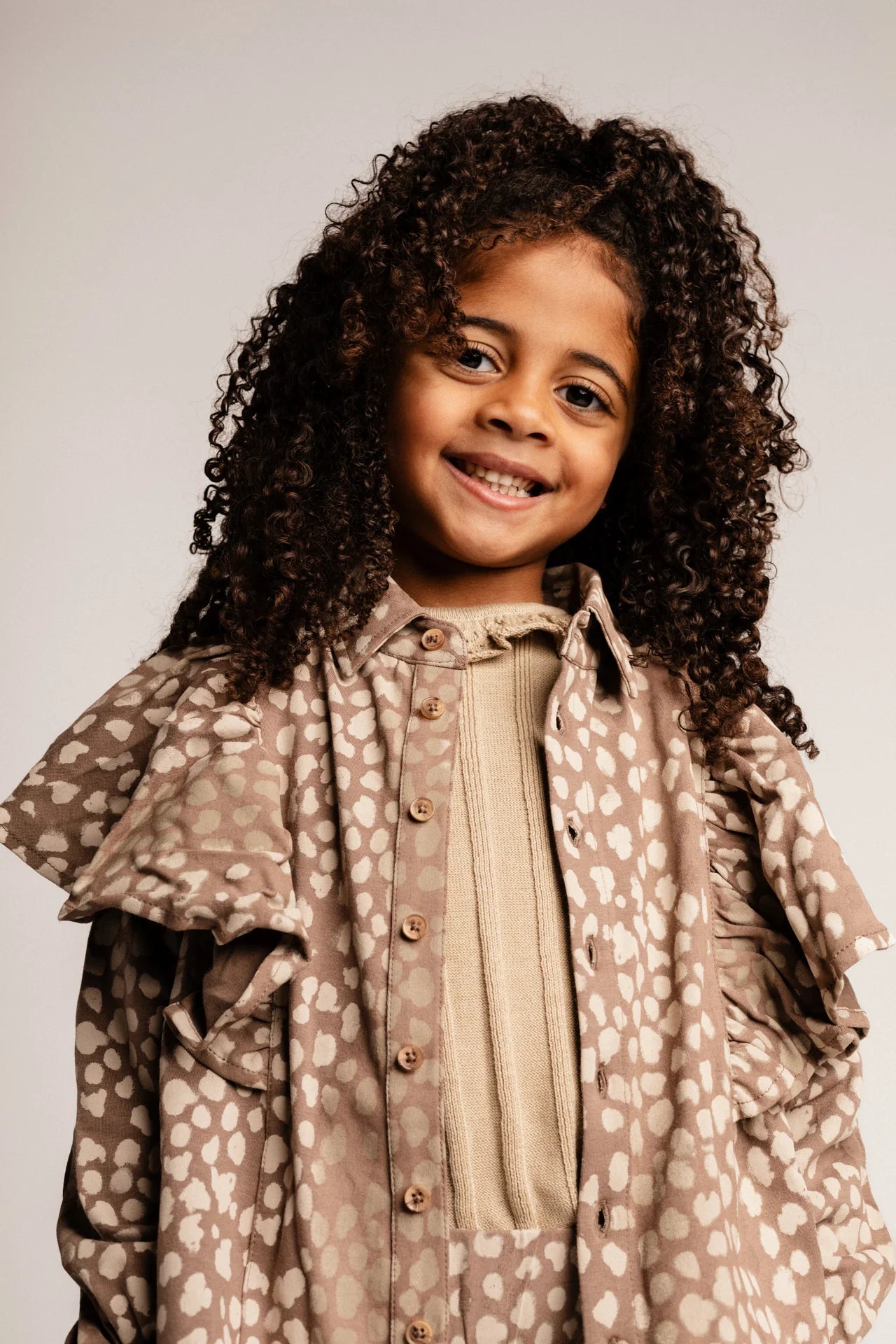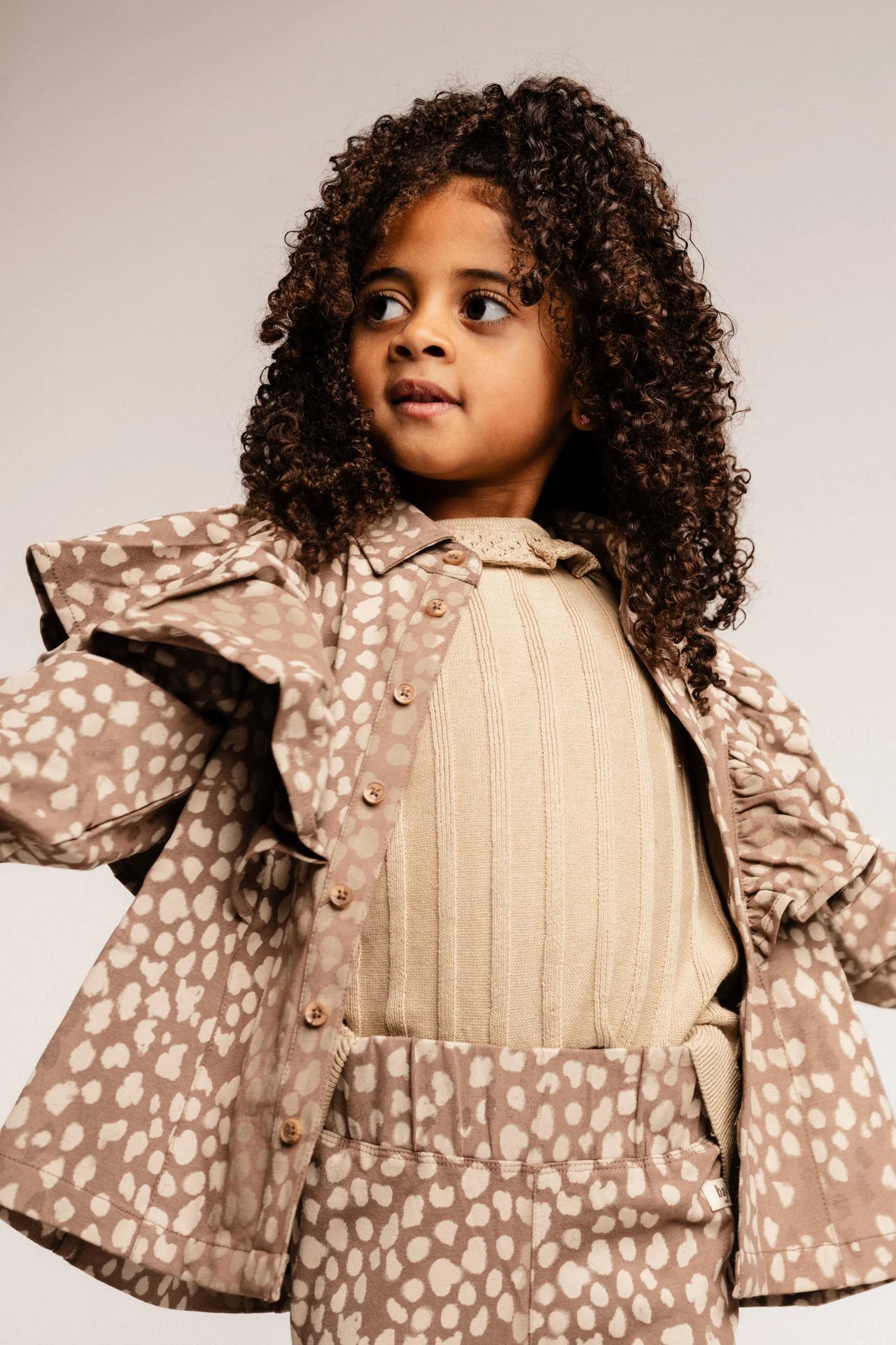 Bluzë Modale Pambuku me Printim për Vajza - Elegante dhe e Gjallë Kjo bluzë e bukur me mëngë të gjata për vajza është bërë nga një përzierje e butë dhe e qëndrueshme pambuku-modal. Ajo paraqet një printim elegant me nuancë rëre në stilin e kafshëve dhe rrudha të gjalla përgjatë shpatullave, duke krijuar një pamje bashkëkohore dhe në modë. Pëlhura e lehtë dhe e frymëmarrshme e bën atë të rehatshme dhe ideale për veshje të përditshme ose për një rast të veçantë. ✔ E bërë nga pambuk-modal: e butë, e frymëmarrshme dhe e qëndrueshme ✔ Printim modern me nuancë rëre në stilin e kafshëve ✔ Rrudha përgjatë shpatullave për një prekje të gjallë ✔ Kopsa në pjesën e përparme për t'u veshur dhe hequr lehtë