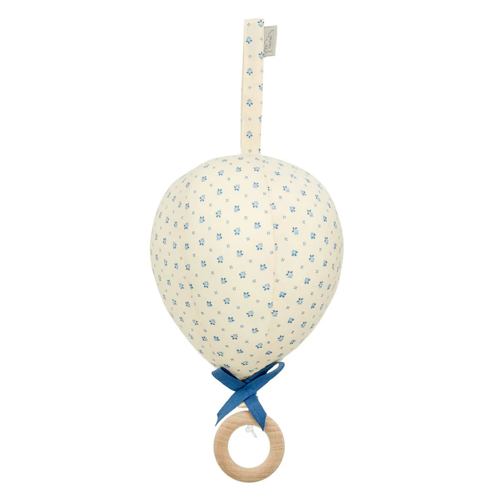 The mobile is shaped as a balloon with a little bow in cotton tape.