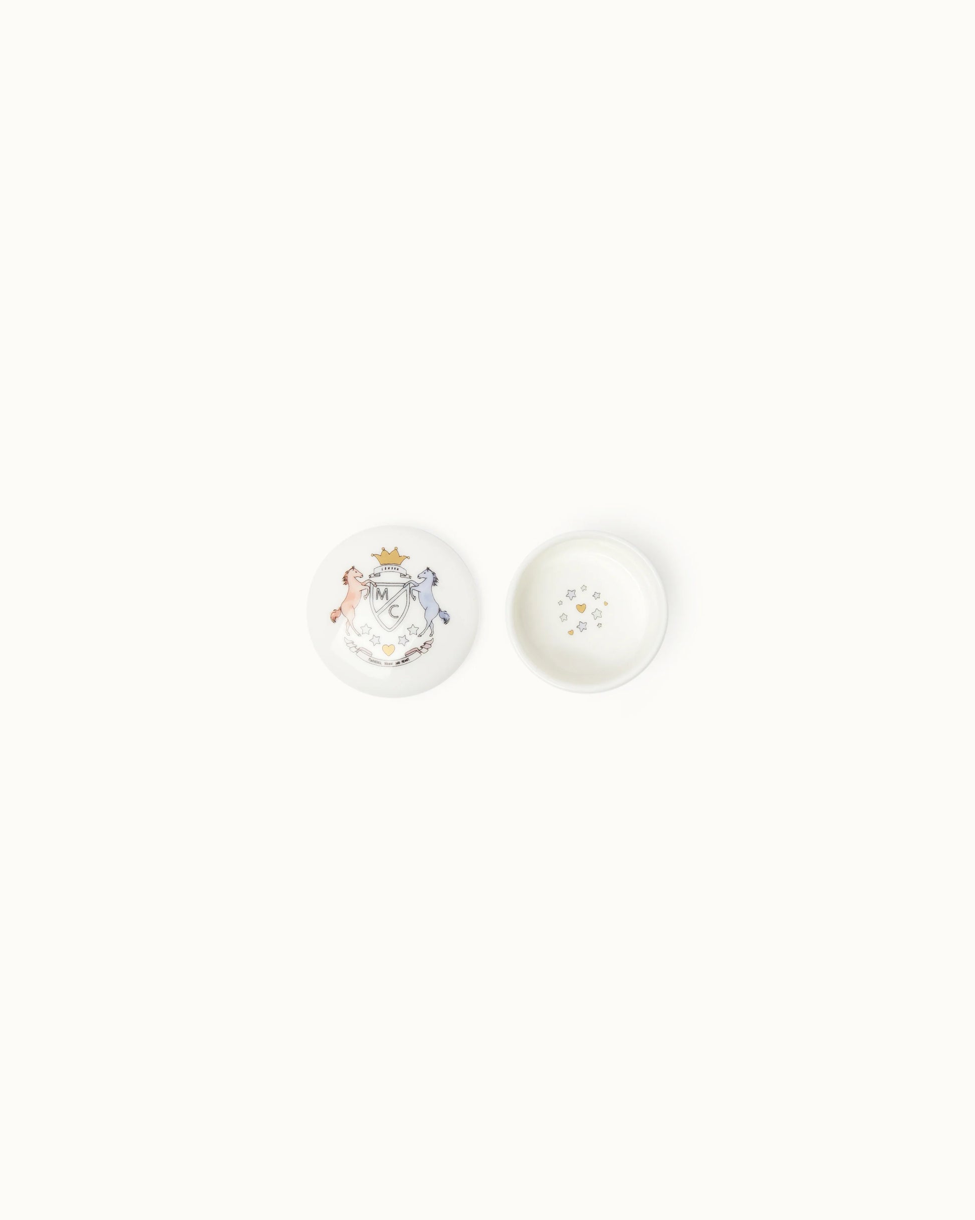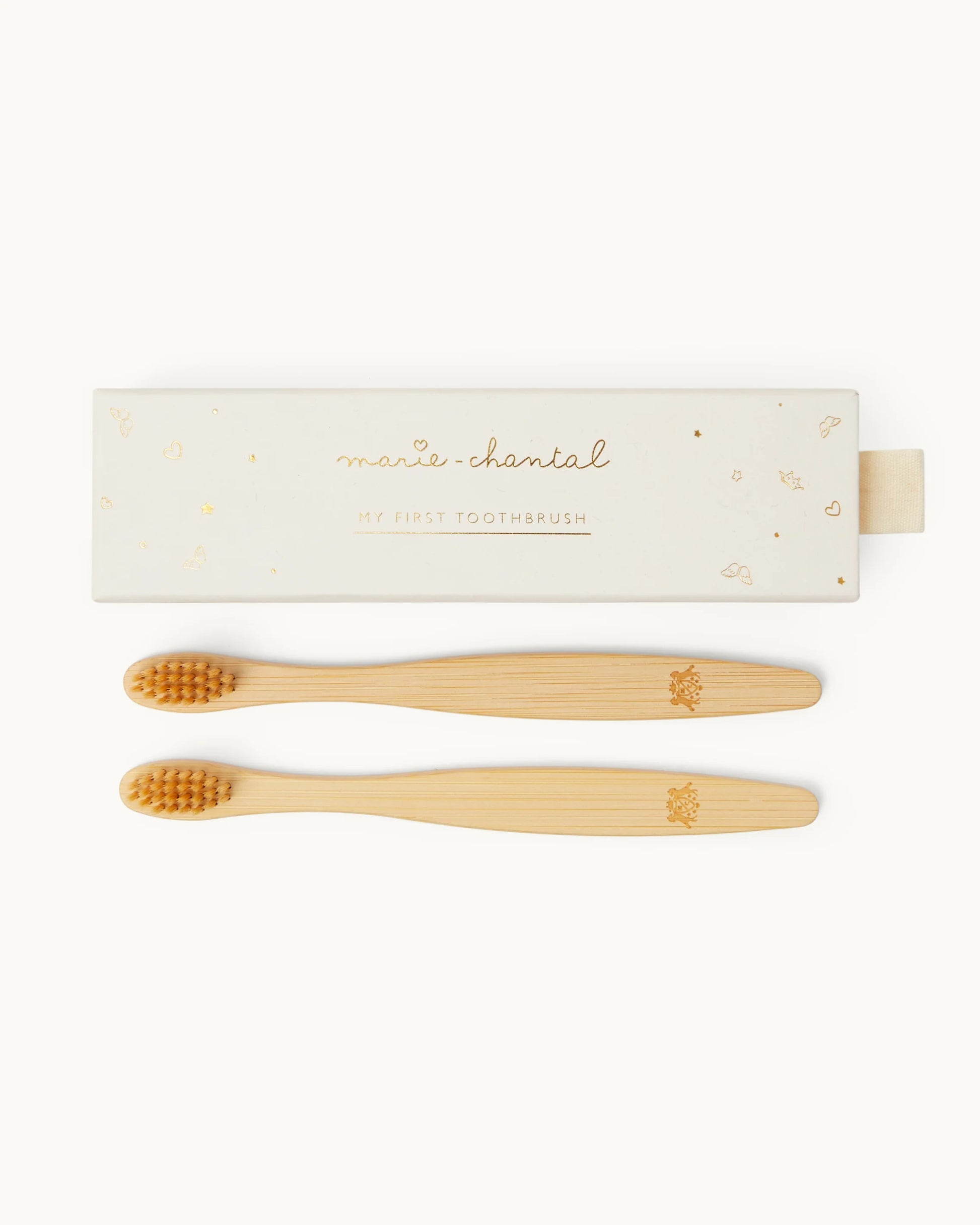 Celebrate first moments with Marie-Chantal's 'My First Vanity’ suitcase set - an edit of treasured keepsakes. From your little one's first toothbrush and toothbox, featuring our heritage crest design engraved and painted in pastel watercolour. The set also includes our best-selling Aristidis wooden hairbrush, now available with our exclusive ‘My First Lock’ keepsake envelope and branded wax seal.