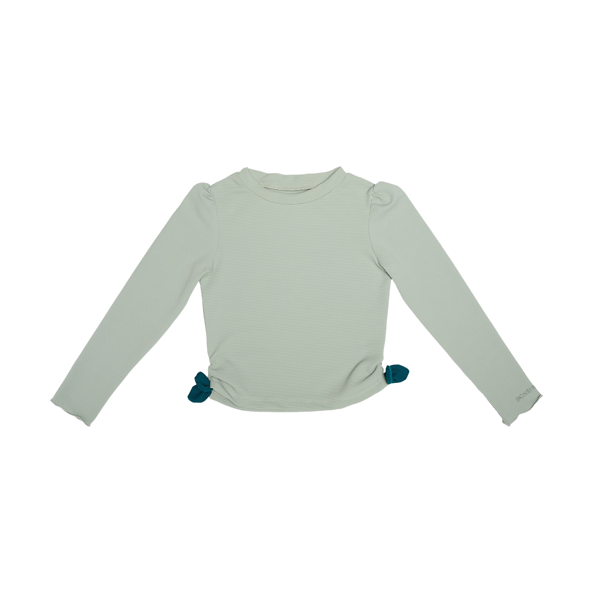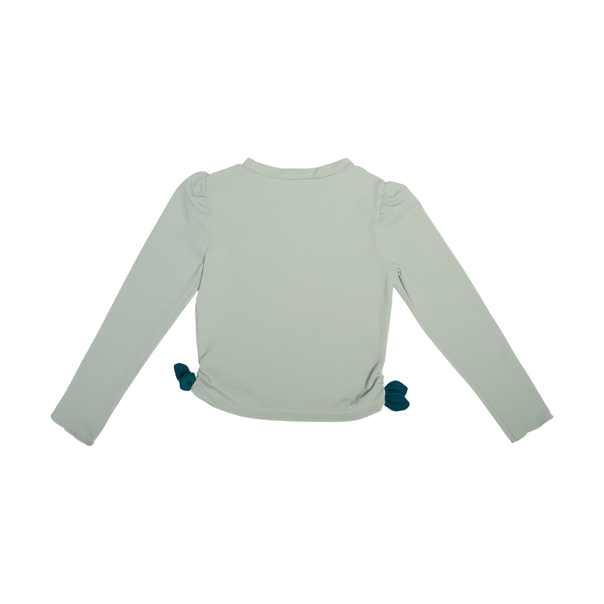 You're one in a melon! This pretty swimshirt will keep your little one safe from the hot summer sun in style. The shirt features puffed sleeves, embroidered Donsje logo and smocked detailing. Match the Nia swimshirt with the Sisi swimming briefs and Quana headband for a statement look. UPF (Ultraviolet Protection Factor) indicates how well the material protects against UV radiation. UPF 50+ means our swimwear offers a very high protection factor of up to 98%, ensuring optimal skin protection without compromising style or comfort.