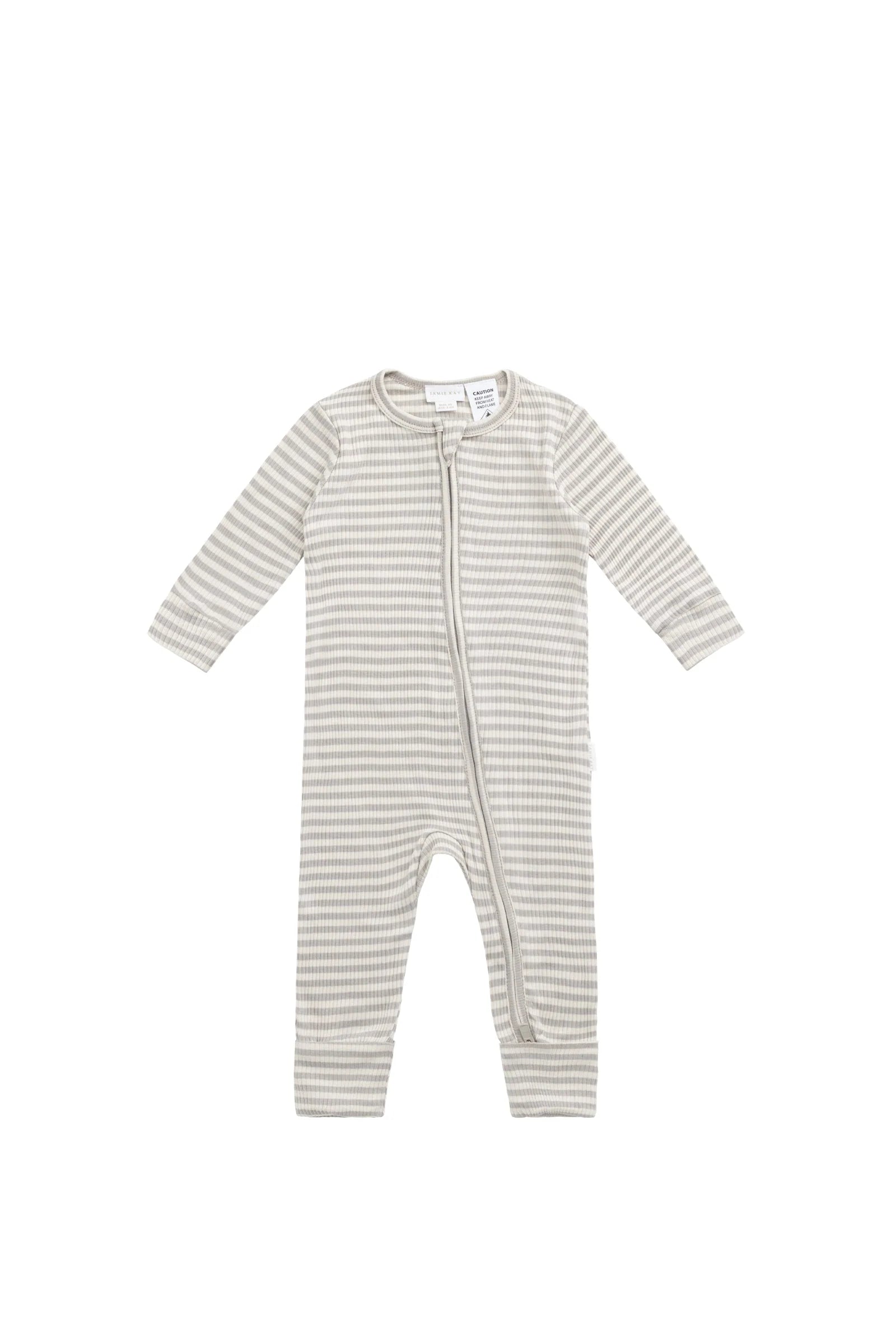 Organic Cotton Modal Frankie Onepiece - Narrow Stripe Gazelle/Oat