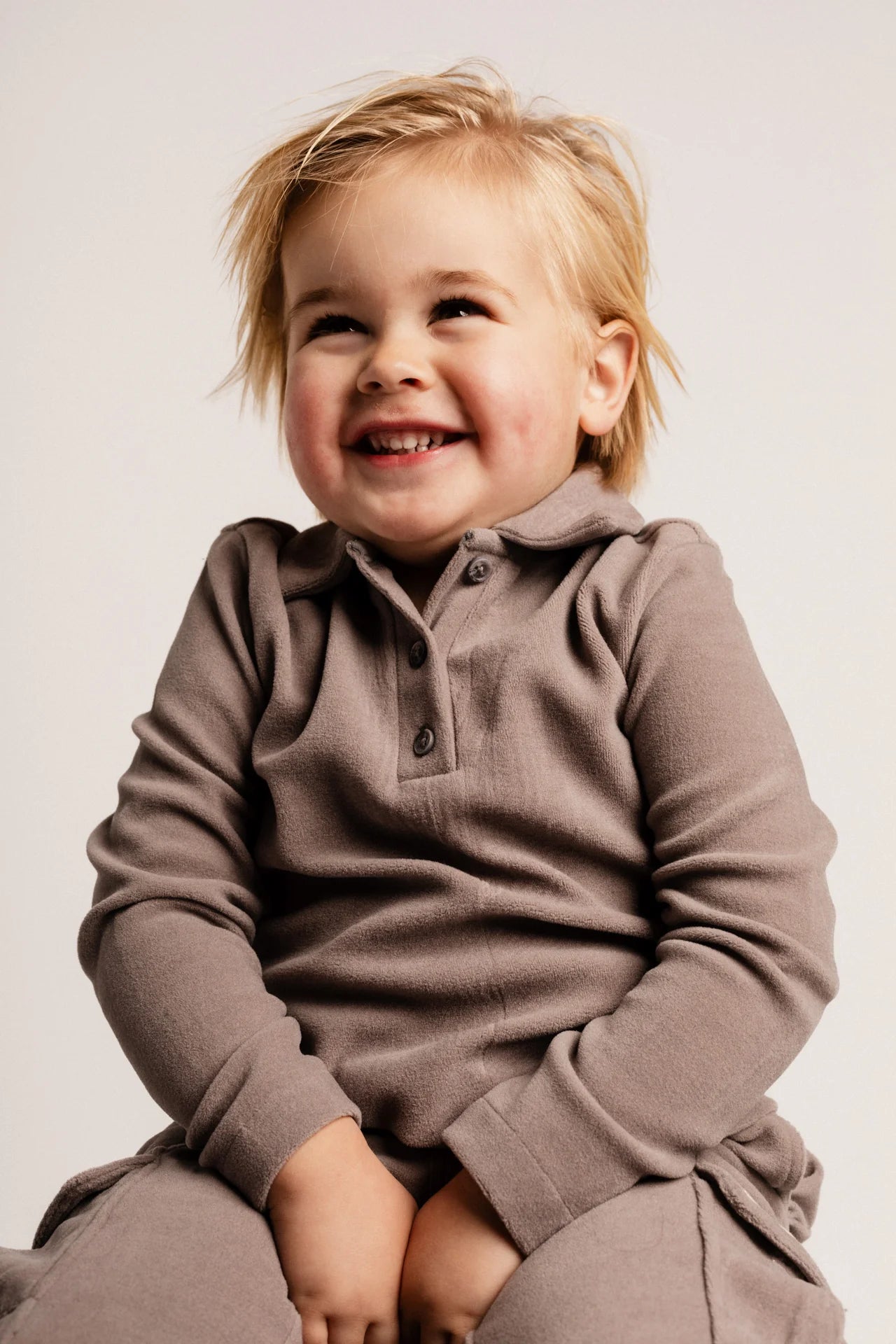 Boys' Polo Shirt in Soft Velvet - 2 Colors This boys' long-sleeved polo shirt combines style and comfort. Made from a luxurious velvety fabric (95% polyester, 5% lycra), it feels wonderfully soft and offers plenty of stretch for a comfortable fit. The classic collar and three-button placket give the polo a smart look, while the fabric provides a modern and playful look. ✔ Velvety soft fabric - comfortable & stylish ✔ 95% polyester, 5% lycra for stretch and shape retention ✔ Long sleeves, ideal for autumn and winter ✔ Available in 2 colors: green & gray - easy to combine ✔ Perfect for school, leisure time or a formal occasion