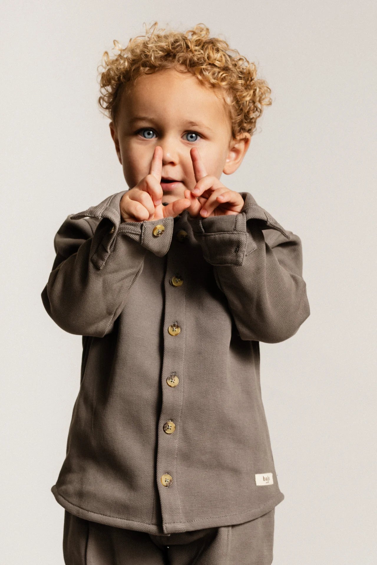 Boys blouse gray - cool & stylish This boys blouse with long sleeves is a timeless piece of clothing that is easy to combine. Made from a classic gray twill fabric, the blouse has a neat look that can be worn both casual and dressed up. The continuous button closure and classic collar make it a versatile item for any occasion. ✔ Made of soft and durable twill quality ✔ Classic gray, easy to combine with any outfit ✔ Features a button closure and collar ✔ Comfortable fit, suitable for everyday use and special occasions ✔ Cool with jeans, neat with chinos With this gray boys blouse you choose a basic item that fits into any wardrobe. Ideal for school, parties or a formal occasion.