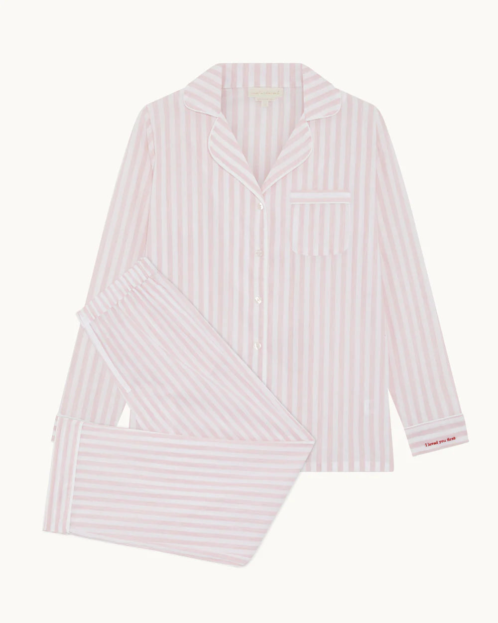 Marie-Chantal's Adore Stripe Pyjama for Women. A celebration of love and effortless elegance, featuring soft and graceful Marie-Chantal stripes in pink.