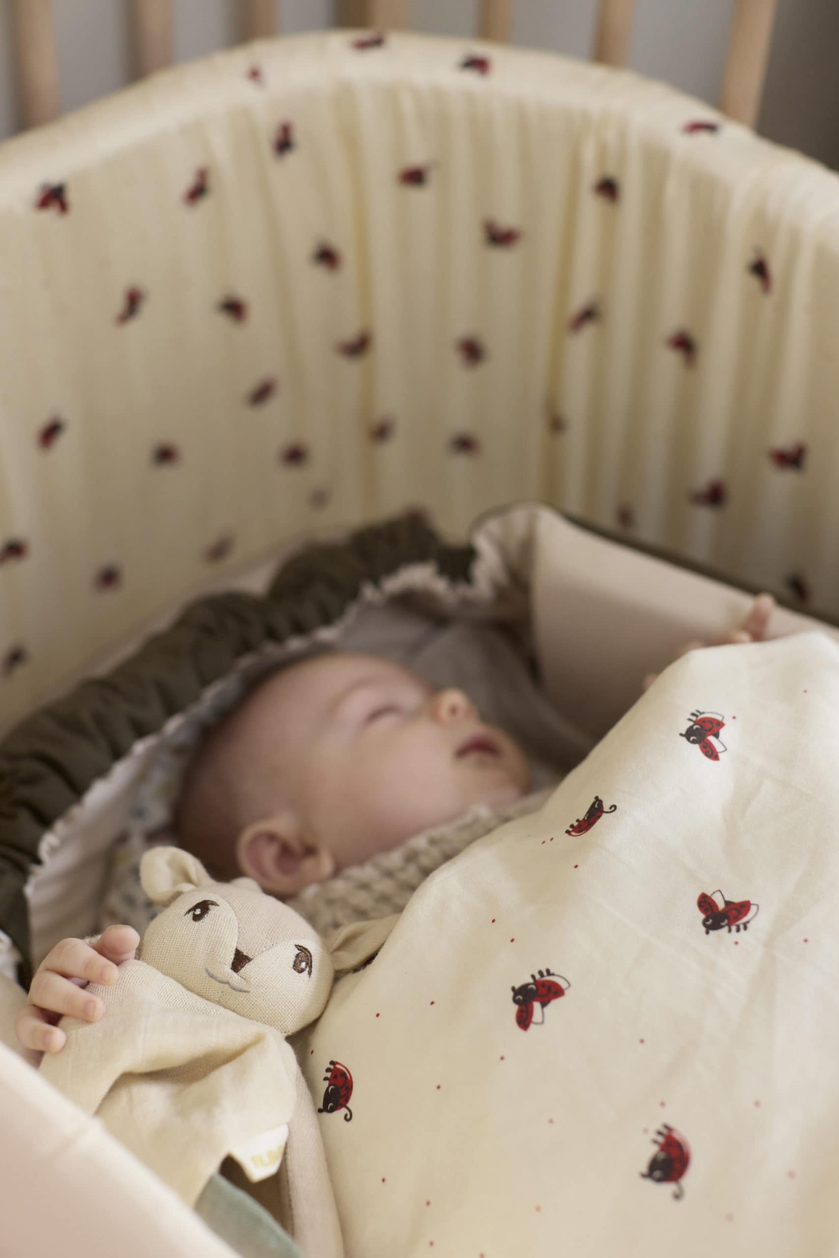 Introduce your baby to their new best friend, the Comfort blanket with teether in the adorable fawn design. Made from breathable, GOTS-certified organic muslin cotton, this cuddle cloth is gentle on your little one's skin. The embroidered details and teething ring provide sensory stimulation while also soothing teething gums. Approved for ages 0+, this washable blanket is perfect for snuggles and exploration.