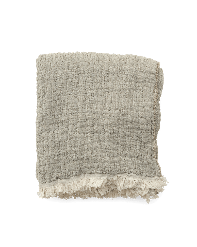 Garbo&Friends Mellow blankets are made in the combination of 55% Linen and 45% CoIon, that creates a beautiful structure in this blanket. The blanket is medium thickness, so it is perfect to use anywhere around the house. It is double sided and carries our signature embroidered G.Ethically made in Portugal and OEKO-TEX® 100 Certified