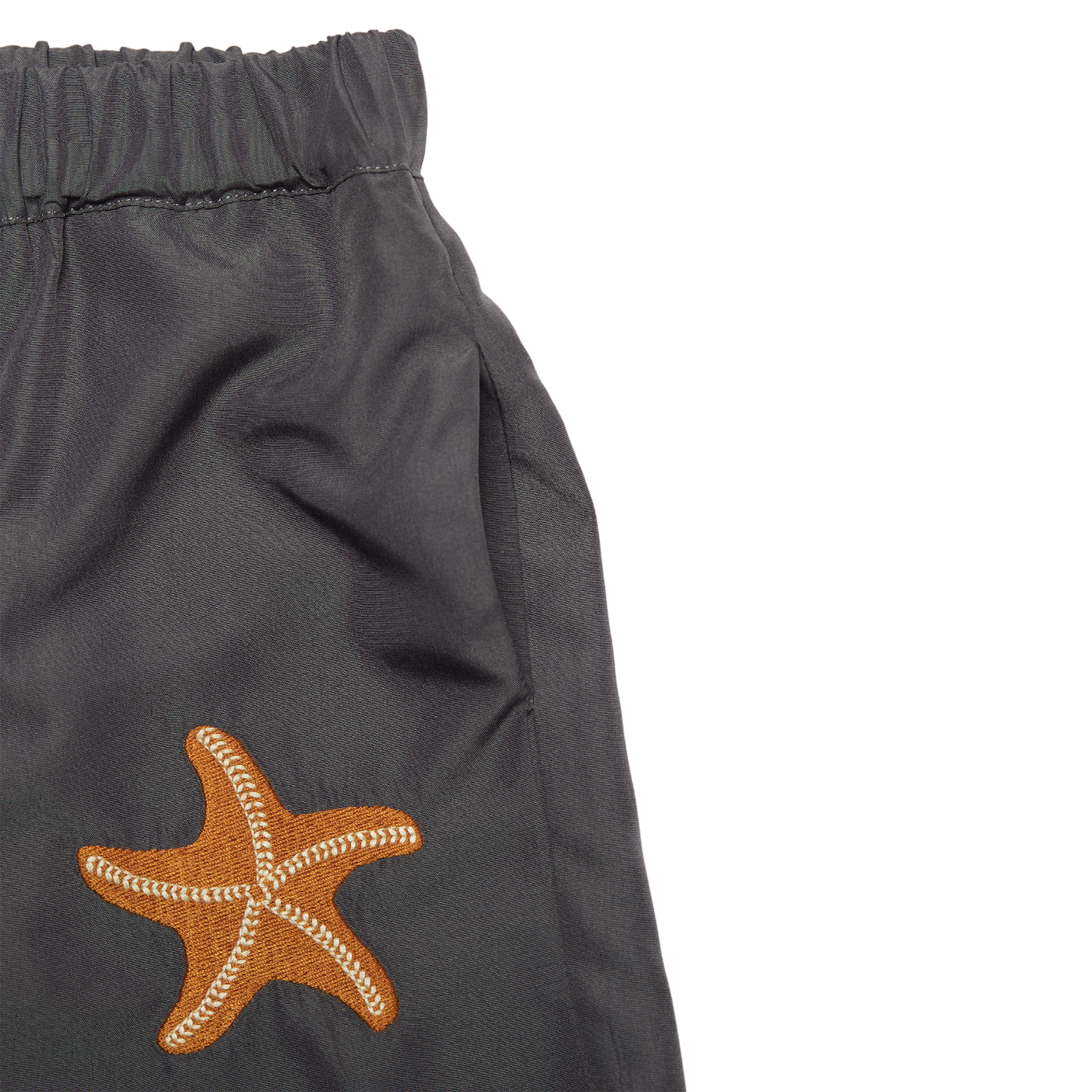 Be the star (fish) of this beach! The Seba swimshorts are a lovely beach essential for your little swimmer. Made from 100% recycled polyester, the shorts are lightweight and will dry up quickly. A stretch waistband ensures absolute comfort, while the crab embroidery at the front adds a playful touch to the shorts.